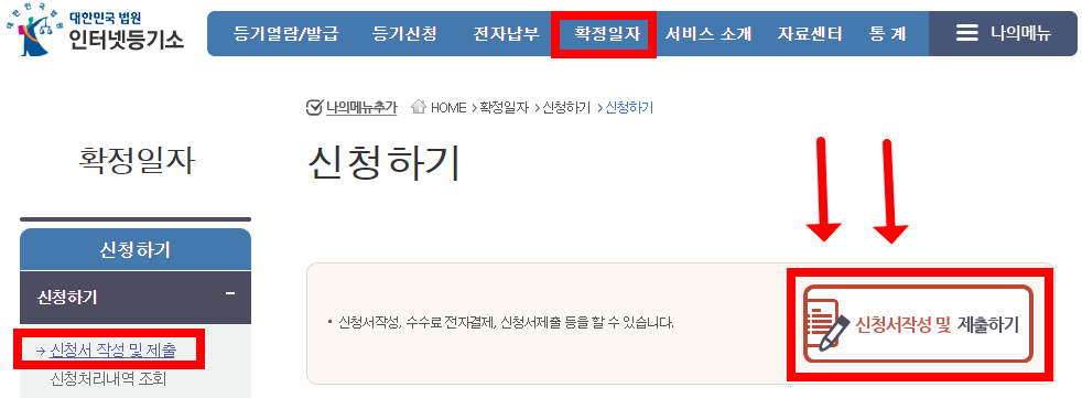 👉 확정일자 받는법 : 대법원 인터넷등기소 > 확정일자 > 신청하기 > 신청서 작성 및 제출